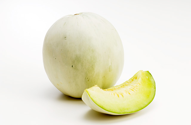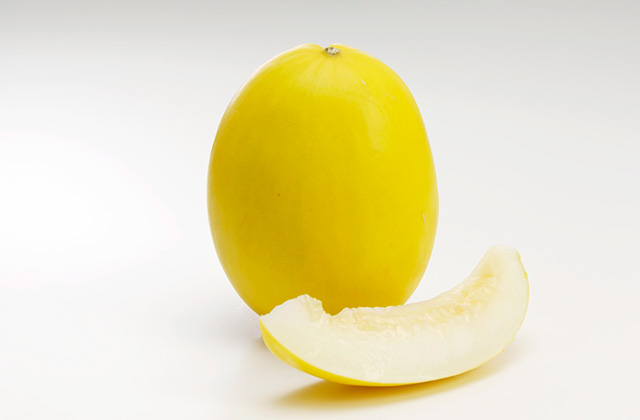 網目のないノーネットメロンで、果皮がツルっとしていて白みがかった薄緑色をしています。果肉は淡いオレンジ色~黄緑色で、サイズは500g~700gくらいとやや小ぶり。糖度は16度前後と甘味が強くて芳香があり、とろけるような口当たりです。